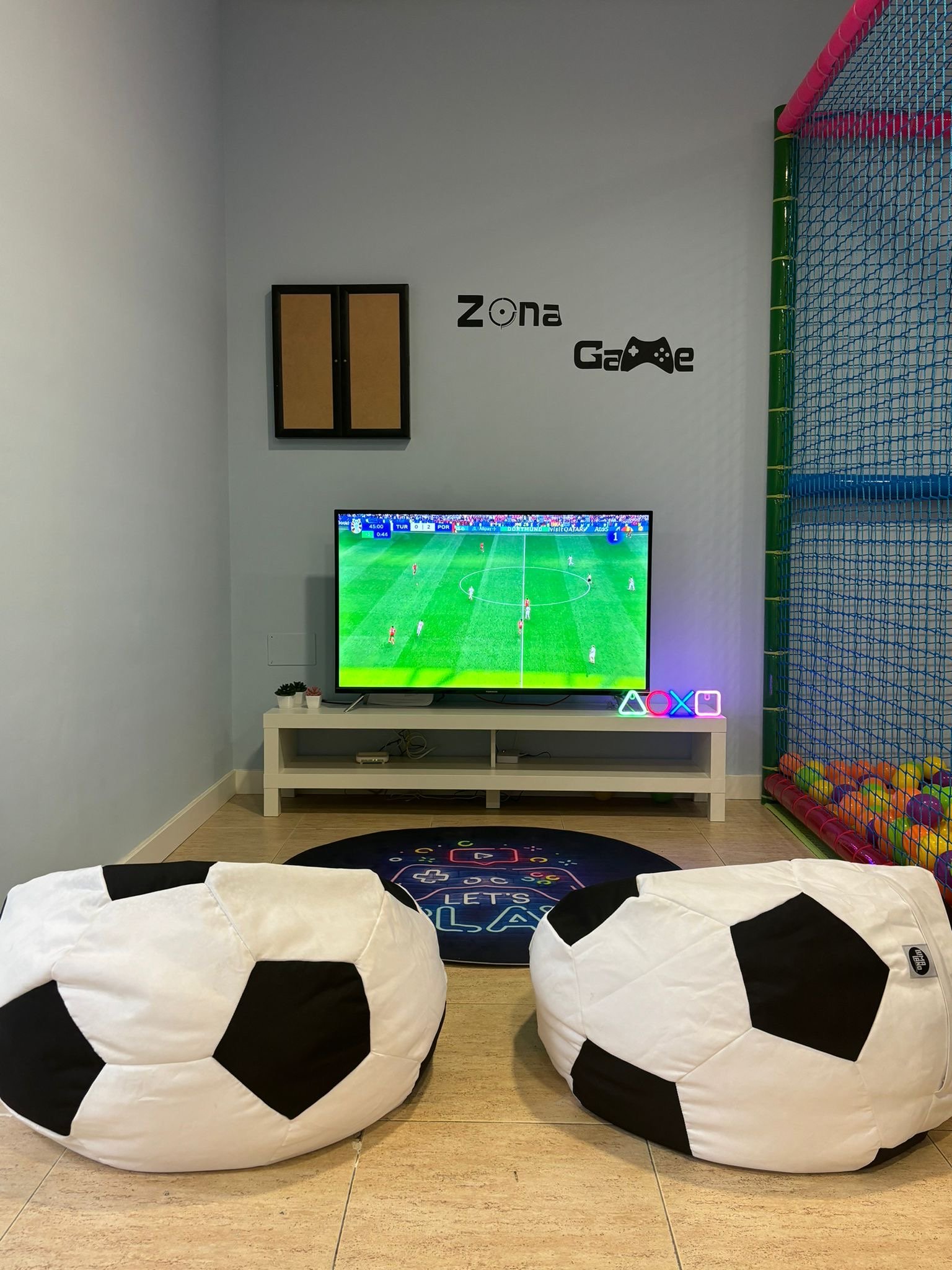 Descubre nuestra Zona Gamer, creada para ofrecer la mejor experiencia de videojuegos. Este espacio incluye dos puffs ergonómicos diseñados para la máxima comodidad durante largas sesiones de juego., televisión de alta definición para una calidad de imagen superior y PlayStation para los amantes del los videojuegos.
